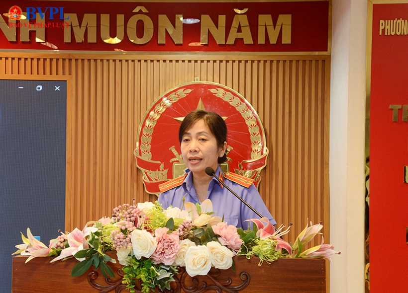 | Đại diện VKSND Khu vực 12 TP Hồ Chí Minh phát biểu tham luận tại hội nghị. |