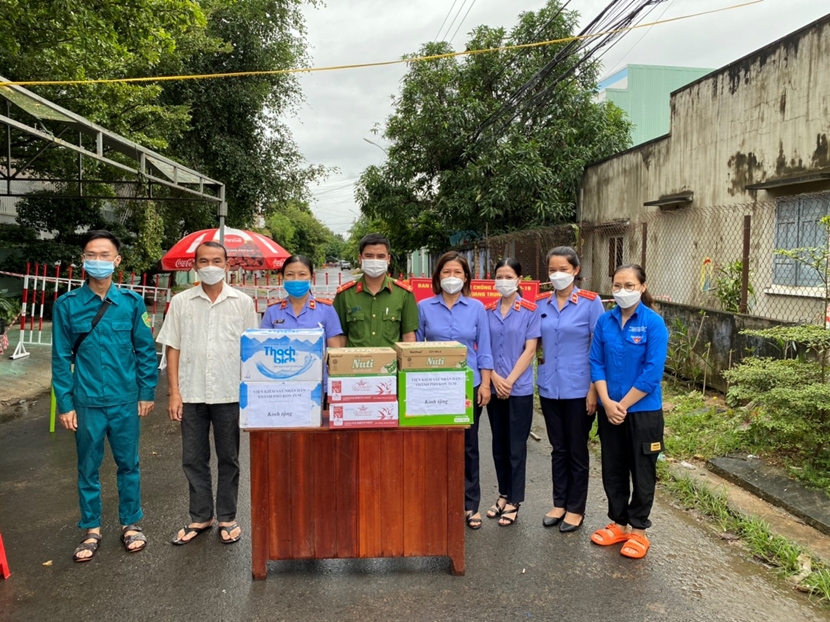 Bên cạnh đó, Đoàn công tác của VKSND TP Kon Tum đã trao các phần quà là nhu yếu phầm thiết yếu để hỗ trợ các lực lượng làm nhiệm vụ tại chốt kiểm soát.