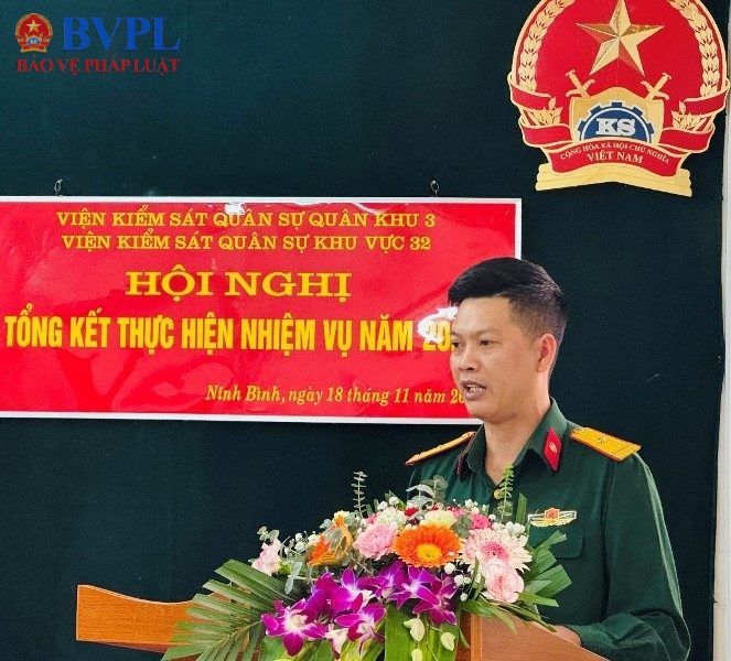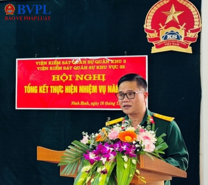 Ngày 18/11/2025, VKSQS khu vực 32 đã tổ chức Hội nghị tổng kết thực hiện nhiệm vụ và trao quyết định khen thưởng cho 2 đồng chí có thành tích xuất sắc năm 2025. Đồng chí Đại tá Vũ Xuân Tuấn, Viện trưởng VKSQS Quân khu 3, dự và chỉ đạo Hội nghị.