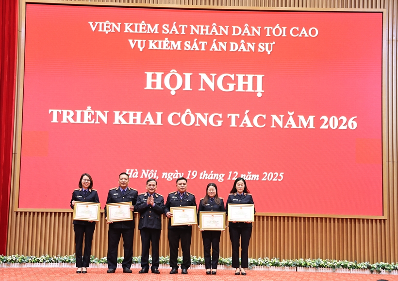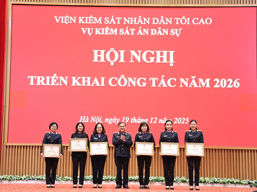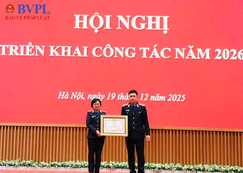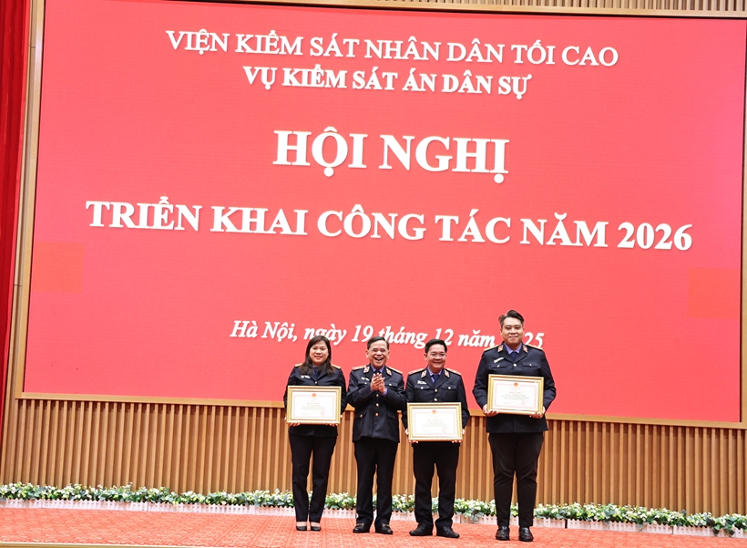 | Đồng chí Đỗ Mạnh Bổng, Vụ trưởng Vụ 9, VKSND tối cao trao Bằng khen cho các cá nhân đạt thành tích xuất sắc trong công tác năm 2025. |