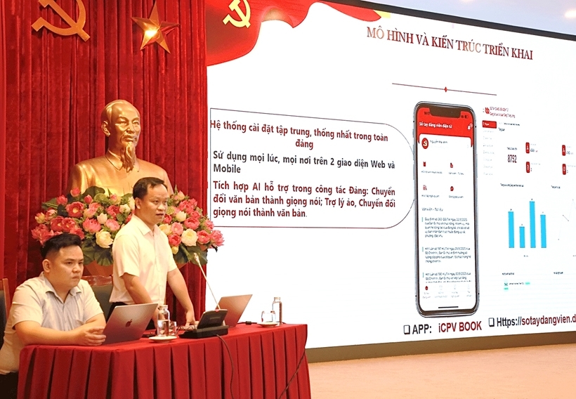 | Các cán bộ Cục Chuyển đổi số - Cơ yếu (Văn phòng Trung ương Đảng) tập huấn sử dụng ứng dụng “Sổ tay đảng viên điện tử”. (Ảnh: Cổng TT điện tử Đảng cộng sản) |