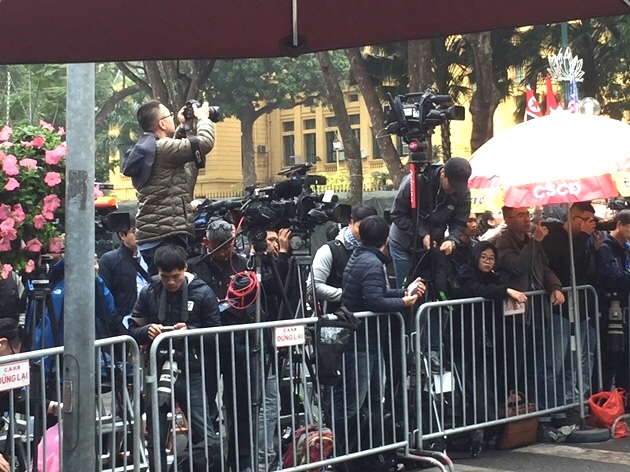 | Phóng viên các cơ quan báo chí tác nghiệp tại Hội nghị thượng đỉnh Mỹ - Triều lần 2. (Ảnh: Đắc Thái) |