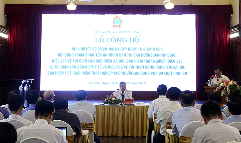 Hội đồng Thẩm phán TAND tối cao vừa ban hành Nghị quyết số 05/2019/NQ-HĐTP hướng dẫn áp dụng một số quy định tại Điều 214 về tội gian lận bảo hiểm xã hội, bảo hiểm thất nghiệp, Điều 215 về tội gian lận bảo hiểm y tế và Điều 216 về tội trốn đóng bảo hiểm xã hội, bảo hiểm y tế, bảo hiểm thất nghiệp cho người lao động của Bộ luật Hình sự. Nghị quyết này có hiệu lực thi hành kể từ ngày 1/9/2019.