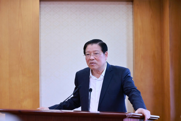 | Đồng chí Phan Đình Trạc, Ủy viên Bộ Chính trị, Bí thư Trung ương Đảng, Trưởng Ban Nội chính Trung ương phát biểu tại hội nghị. |