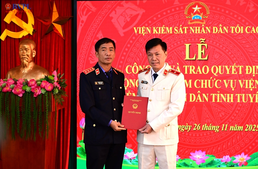 Tại buổi lễ, thừa ủy quyền của Viện trưởng VKSND tối cao, đồng chí Nguyễn Văn Minh, Phó Vụ trưởng Vụ Tổ chức cán bộ đã công bố Quyết định 378/QĐ-VKSTC ngày 21/11/2025 của Viện trưởng VKSND tối cao..