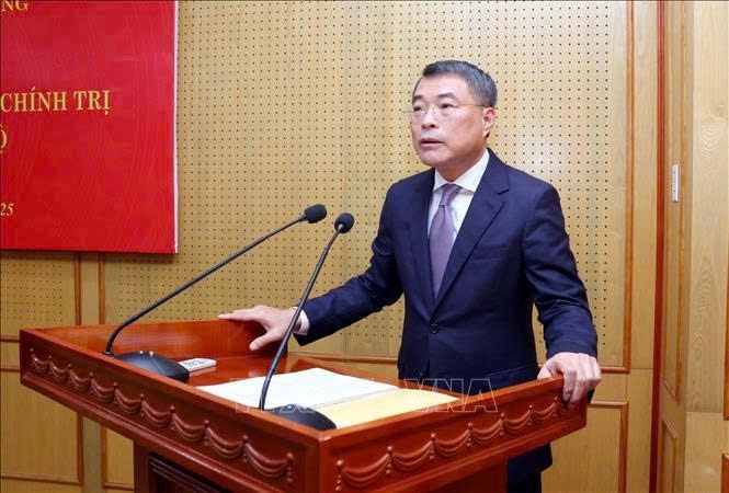 Đồng chí Lê Minh Hưng, Ủy viên Bộ Chính trị, Bí thư Trung ương Đảng, Trưởng ban Tổ chức Trung ương phát biểu, giao nhiệm vụ cho đồng chí Bùi Thị Quỳnh Vân. Ảnh: Phạm Kiên/TTXVN |