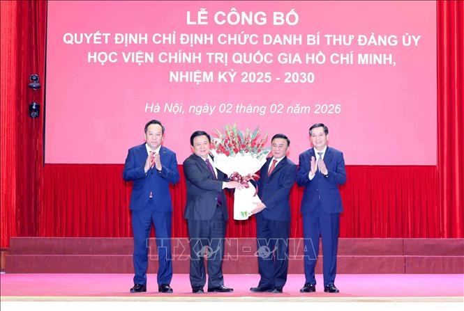 Chiều 2/2, tại Hà Nội, Đảng ủy Học viện Chính trị quốc gia Hồ Chí Minh tổ chức Lễ công bố Quyết định của Ban Thường vụ Đảng uỷ các cơ quan Đảng Trung ương về việc chỉ định chức danh Bí thư Đảng ủy Học viện Chính trị quốc gia Hồ Chí Minh, nhiệm kỳ 2025-2030. Đồng chí Trần Cẩm Tú, Ủy viên Bộ Chính trị, Thường trực Ban Bí thư, Bí thư Đảng uỷ các cơ quan Đảng Trung ương chủ trì buổi lễ.