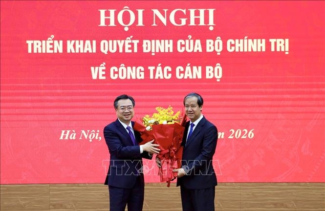 Tại Hội nghị, Ủy viên Trung ương Đảng, Phó Trưởng Ban Tổ chức Trung ương Bùi Thị Quỳnh Vân công bố các Quyết định của Bộ Chính trị về điều động, phân công, bổ nhiệm giữ chức Phó Trưởng Ban Chính sách, chiến lược Trung ương.