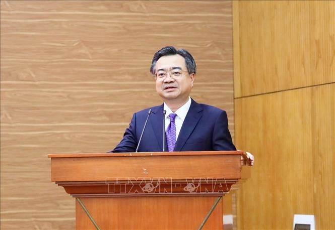 | Đồng chí Nguyễn Thanh Nghị, Uỷ viên Bộ Chính trị, Bí thư Trung ương Đảng, Trưởng Ban Chính sách, chiến lược Trung ương phát biểu tại hội nghị. Ảnh: TTXVN |