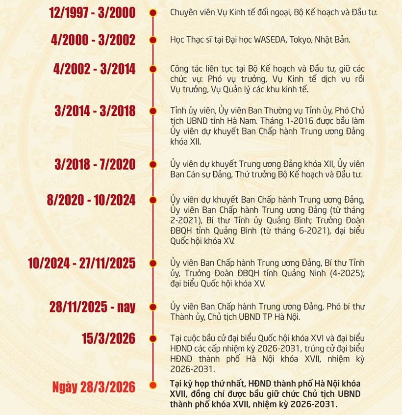 | Quá trình công tác của Chủ tịch UBND TP Hà Nội Vũ Đại Thắng. |