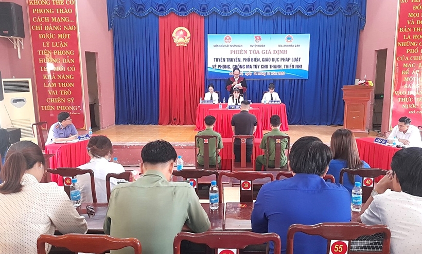 | Quang cảnh một phiên tòa giả định tuyên truyền, PBGDPL về phòng chống ma túy cho thanh thiếu nhi. (Ảnh minh hoạ) |