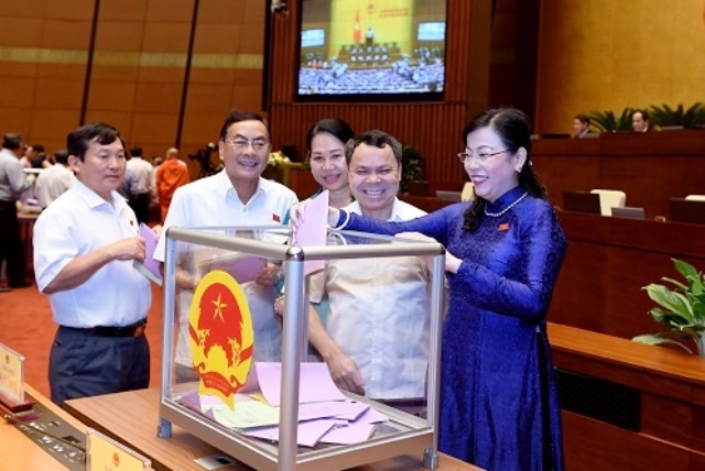 | Các đại biểu bỏ phiếu miễn nhiệm các ủy viên Ủy ban Thường vụ Quốc hội - Ảnh: VGP/Nhật Bắc |