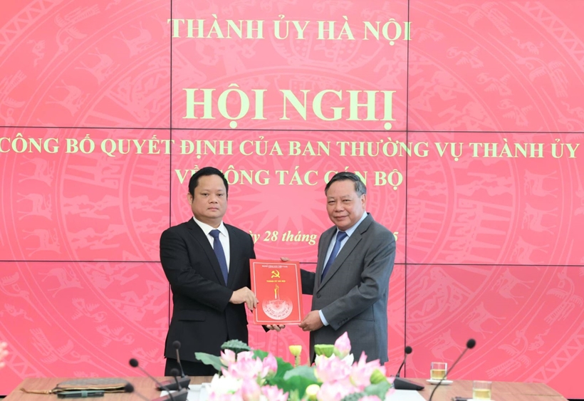 | Ông Vũ Minh Tuấn nhận quyết định của Ban Thường vụ Thành ủy Hà Nội. |