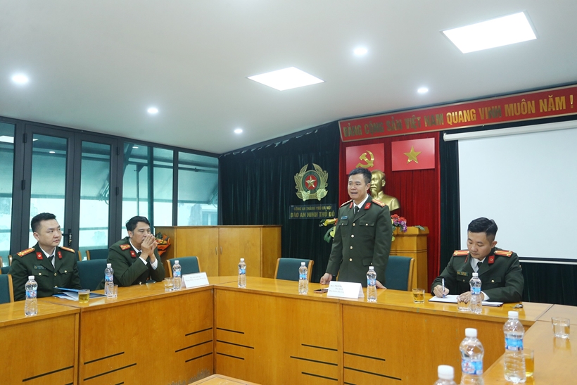 | Đại tá Nguyễn Ngọc Quyền, Phó Bí thư Đảng ủy, Phó Giám đốc Công an thành phố Hà Nội phát biểu tại buổi làm việc |