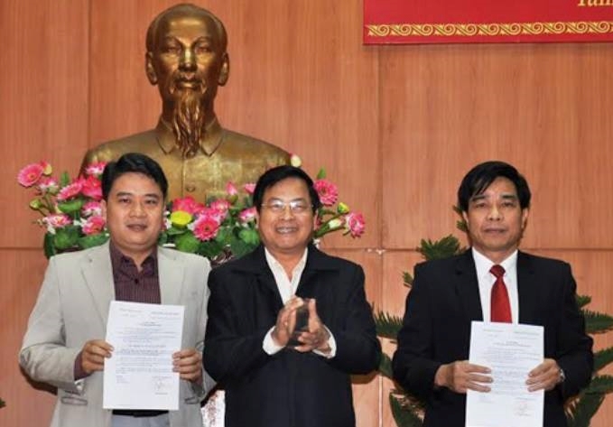 | Ông Lê Văn Dũng (bên phải) được bầu giữ chức Phó bí thư Thường trực Tỉnh ủy Quảng Nam |