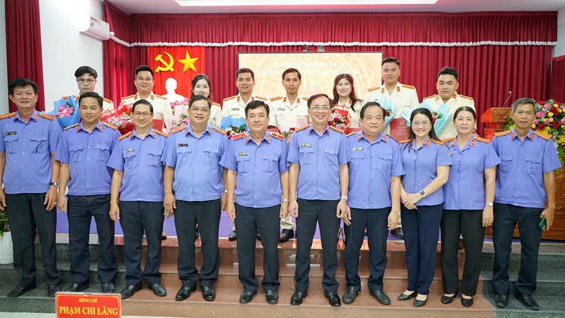 Tại buổi lễ đồng chí Cao Văn Bền, Trưởng phòng Tổ chức cán bộ công bố 8 Quyết định bổ nhiệm Kiểm sát viên sơ cấp gồm các đồng chí: Trần Thị Cẩm Nhung; Nguyễn Minh Hiếu; Trần Minh Luân; Nguyễn Văn Phải; Huỳnh Văn Toàn; Trần Ngọc Thảo; Trần Minh Luân; Nguyễn Phát Tài.