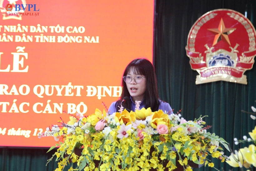Đại diện 14 công chức được tuyển dụng, đồng chí Bùi Phương Nga bày tỏ niềm tự hào khi được đứng trong hàng ngũ VKSND tỉnh Đồng Nai. Đồng chí cam kết luôn học hỏi, phấn đấu, rèn luyện để đáp lại sự tin tưởng của lãnh đạo và đóng góp vào sự phát triển của ngành. Đồng chí gửi lời chúc ngành Kiểm sát Đồng Nai ngày càng đạt được nhiều thành công hơn nữa.