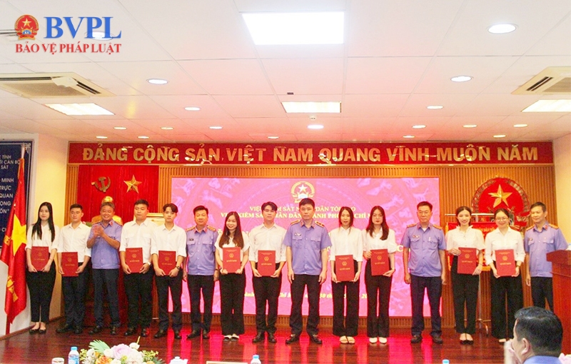 | Đồng chí Nguyễn Đức Thái, Viện trưởng VKSND TP Hồ Chí Minh trao Quyết định tuyển dụng mới. |