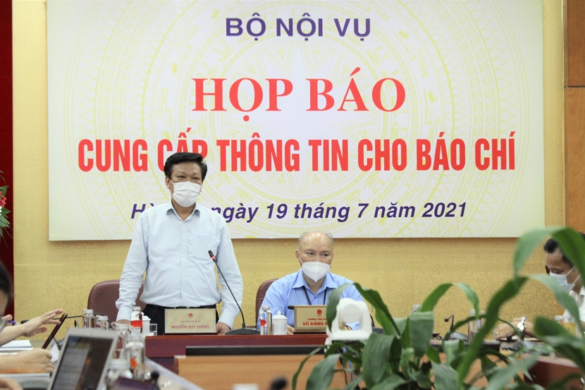 | Thứ trưởng Bộ Nội vụ Nguyễn Duy Thăng phát biểu tại buổi họp báo. Ảnh: Vũ Phương. |