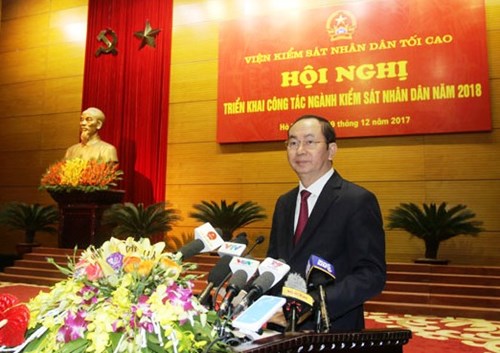 Qua theo dõi tình hình và báo cáo của Viện kiểm sát nhân dân tối cao, tôi đánh giá cao kết quả công tác của ngành Kiểm sát nhân dân đã đạt được trong năm 2017. Với quyết tâm tạo sự chuyển biến mạnh mẽ trong các mặt công tác, đáp ứng tốt yêu cầu, nhiệm vụ cải cách tư pháp, áp dụng quy định của Hiến pháp cũng như các đạo luật mới ban hành vào thực tiễn, Viện kiểm sát các cấp đã tiếp tục triển khai thực hiện nhiều biện pháp có hiệu quả. Công tác quản lý, chỉ đạo, điều hành được tăng cường, phát huy vai trò trách nhiệm của người đứng đầu; kịp thời quán triệt, triển khai thực hiện nghiêm túc các Nghị quyết, Chỉ thị của Đảng, Nhà nước và nhiệm vụ trọng tâm của Ngành; tập trung đổi mới công tác tổ chức, cán bộ; ban hành nhiều Chỉ thị chuyên đề chỉ đạo sâu sát, toàn diện các mặt công tác; khẩn trương xây dựng, hoàn thiện hệ thống quy định, quy chế trong Ngành; chú trọng củng cố, kiện toàn nâng cao chất lượng, hiệu quả công tác thanh tra, kiểm tra nghiệp vụ, chấn chỉnh kỷ cương, kỷ luật, đề cao tinh thần trách nhiệm trong thực thi công vụ.