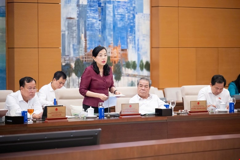 | Phó Chủ nhiệm Thường trực Ủy ban Dân nguyện và Giám sát của Quốc hội Lê Thị Nga trình bày báo cáo. Ảnh: Media Quốc hội |