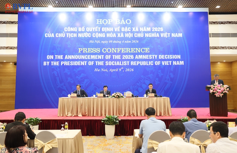 Chiều 9/4, tại Trung tâm Hội nghị Quốc tế, Hà Nội, Văn phòng Chủ tịch nước phối hợp với Bộ Công an, Bộ Ngoại giao, Tòa án nhân dân tối cao và các cơ quan liên quan tố chức họp báo công bố Quyết định về đặc xá năm 2026 của Chủ tịch nước.