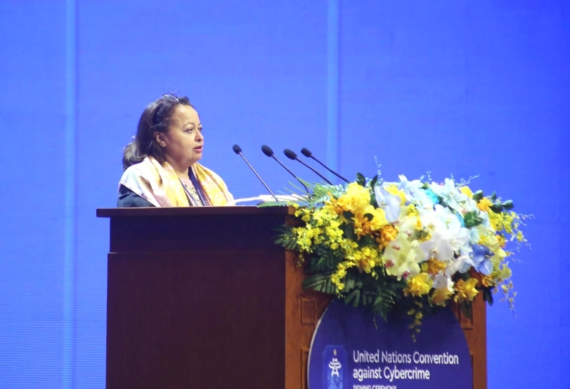 Trong bài phát biểu của mình, bà Faouzia Boumaiza Mebarki, Đại sứ, Chủ tịch Ủy ban đàm phán Công ước Liên hợp quốc về chống tội phạm mạng, bày tỏ lời cảm ơn tới các quốc gia thành viên, các tổ chức thuộc Liên hợp quốc, các cơ sở học thuật, khu vực tư nhân, vì đã đóng góp tích cực để đạt được kết quả mang tính lịch sử. Bà Boumaiza Mebarki nhấn mạnh, thành công của “Công ước Hà Nội” có được nhờ tinh thần bao trùm, đại diện rộng rãi và tinh thần làm việc tập thể, giá trị cốt lõi giúp cộng đồng quốc tế chung tay đối phó hiệu quả với các thách thức toàn cầu.