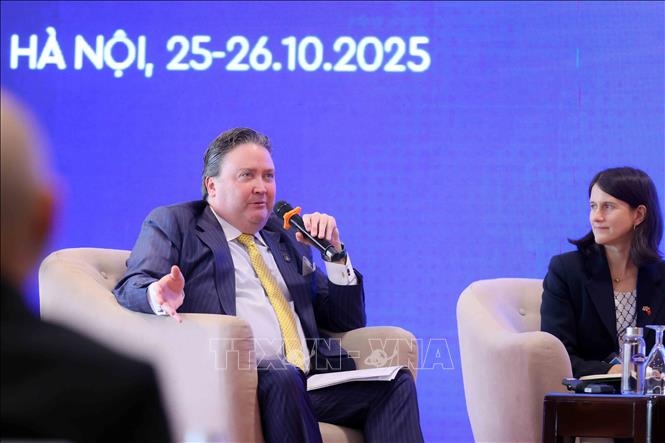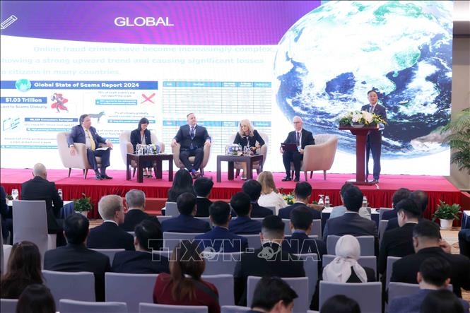 | Các đại biểu quốc tế tham dự tọa đàm Hợp tác toàn cầu phòng, chống lừa đảo trực tuyến. Ảnh: TTXVN |