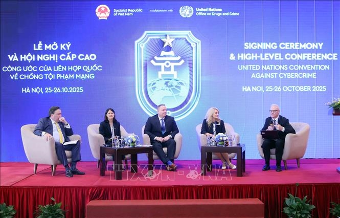 | Toạ đàm Hợp tác toàn cầu phòng, chống lừa đảo trực tuyến. Ảnh: TTXVN |
