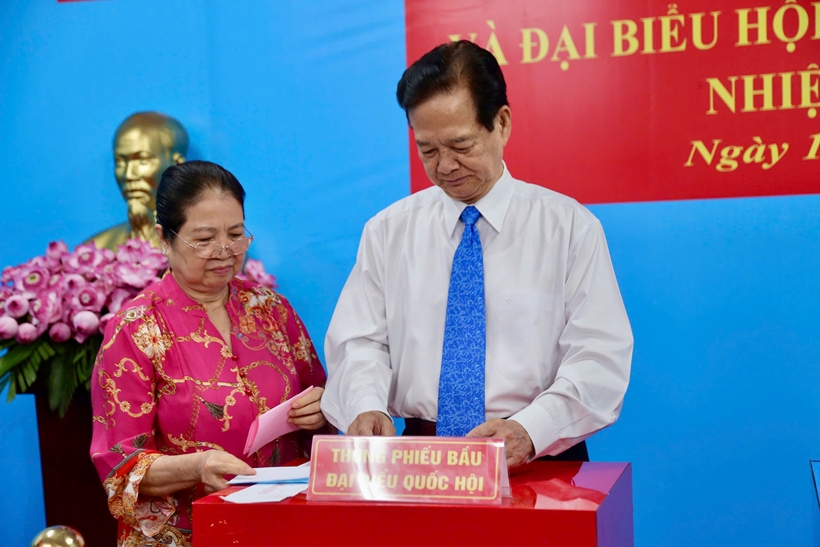 | Nguyên Thủ tướng Chính phủ Nguyễn Tấn Dũng bỏ phiếu tại khu vực bỏ phiếu số 2, phường Xuân Hoà. |