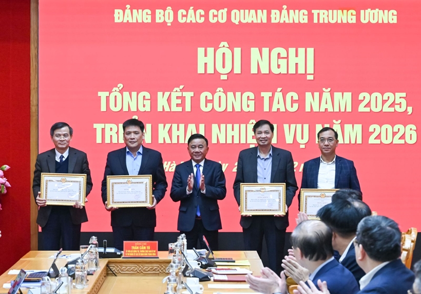 Nhân dịp này, đồng chí Trần Cẩm Tú, Ủy viên Bộ Chính trị, Thường trực Ban Bí thư, Bí thư Đảng ủy các cơ quan Đảng Trung ương trao Bằng khen tặng các Đảng bộ trực thuộc hoàn thành xuất sắc nhiệm vụ năm 2025 và các đảng viên hoàn thành xuất sắc nhiệm vụ 5 năm liền.