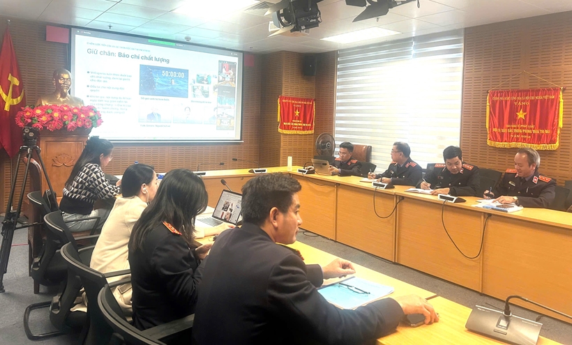 | Điểm cầu trực tuyến Báo Bảo vệ pháp luật tham gia lớp tập huấn. |
