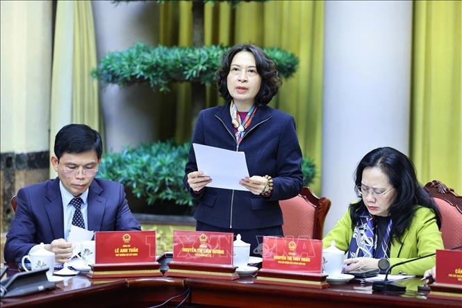 | Văn phòng Chủ tịch nước tổ chức họp báo công bố Lệnh của Chủ tịch nước công bố 13 luật. Ảnh: Minh Đức/TTXVN |
