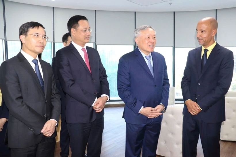| Các đồng chí lãnh đạo tham quan văn phòng Trung tâm Tài chính quốc tế Việt Nam tại TP Đà Nẵng. |
