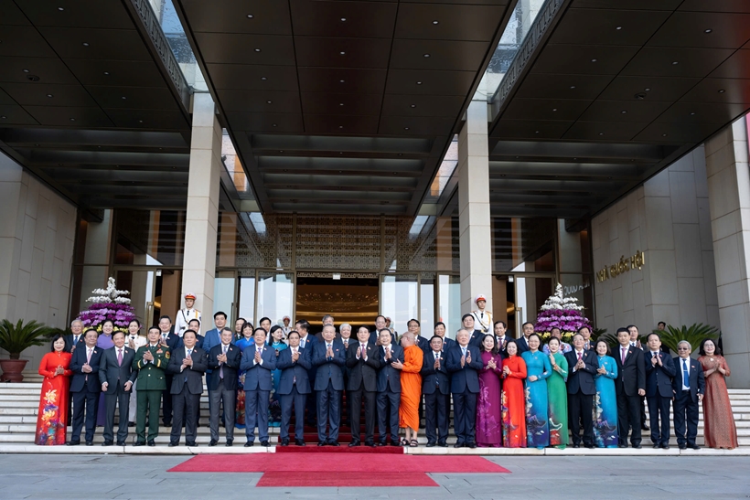 Tham dự Đoàn viếng có Tổng Bí thư Tô Lâm, Chủ tịch nước Lương Cường, Thủ tướng Chính phủ Phạm Minh Chính, Chủ tịch Quốc hội Trần Thanh Mẫn, Thường trực Ban Bí thư Trần Cẩm Tú, Chủ tịch Ủy ban Trung ương Mặt trận Tổ quốc Việt Nam Đỗ Văn Chiến... và các đại biểu Quốc hội khóa XV.