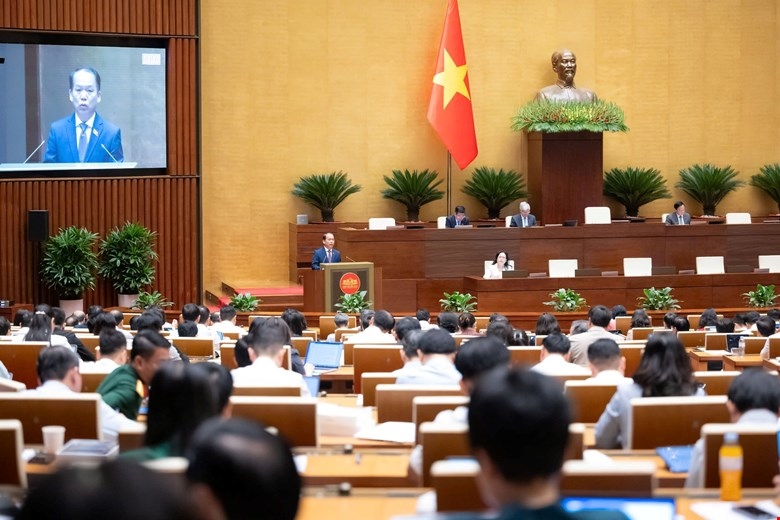 | Bộ trưởng Bộ Tư pháp Hoàng Thanh Tùng trình bày Tờ trình. |