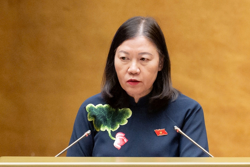 | Chủ nhiệm Ủy ban Dân nguyện và Giám sát của Quốc hội Lê Thị Nga trình bày báo cáo. (Ảnh: CTTĐT Quốc hội) |