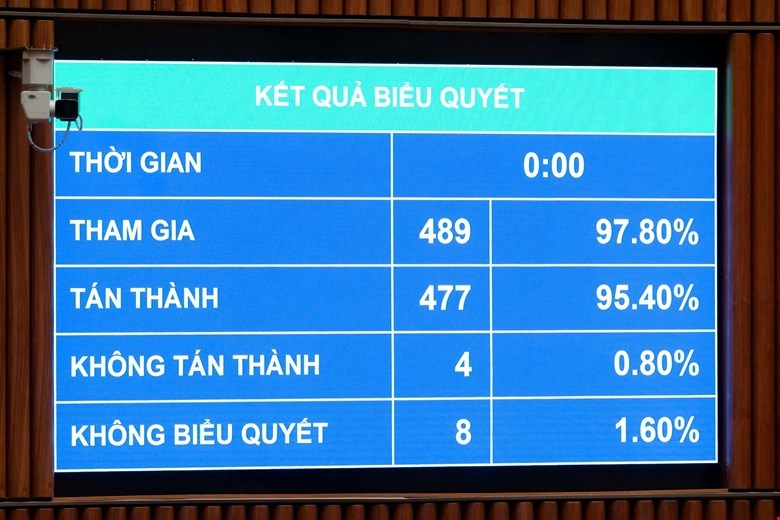 | Kết quả biểu quyết. (Ảnh: Media Quốc hội) |