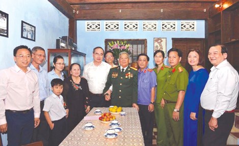 | Đồng chí Nguyễn Thiện Nhân, Ủy viên Bộ Chính trị, Bí Thư Thành ủy TP Hồ Chí Minh cùng gia đình anh Trần Vũ Bình và một số nhân chứng trong một lần tham quan di tích 113A Đặng Dung. |