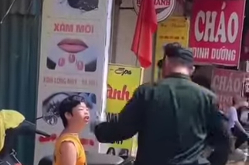 | Thượng tá Phạm Đại Đồng - Phó trưởng Phòng huấn luyện và hướng dẫn nghiệp vụ cảnh sát cơ động, Bộ Tư lệnh cảnh sát cơ động ân cần tặng, đeo chiếc còi chỉ huy của mình cho một bé gái đứng bên lề đường (ảnh cắt từ clip MXH). |