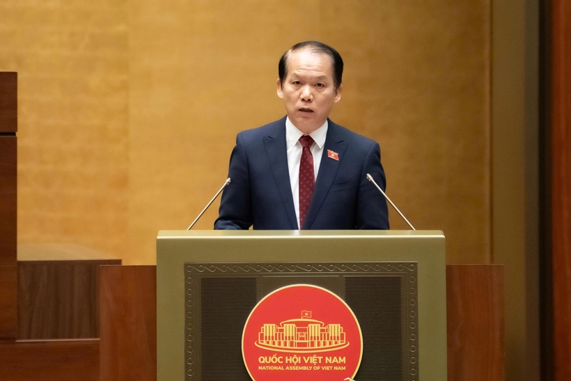 Trước khi tiến hành biểu quyết, Quốc hội đã nghe Ủy viên Ủy ban Thường vụ Quốc hội, Chủ nhiệm Ủy ban Pháp luật và Tư pháp của Quốc hội Hoàng Thanh Tùng trình bày dự thảo Nghị quyết.