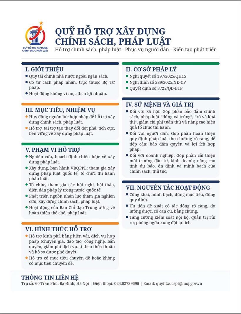 | Thông tin về quỹ hỗ trợ xây dựng chính sách, pháp luật. |