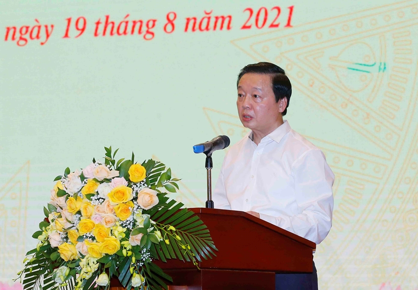 | Bộ trưởng Bộ Tài nguyên và Môi trường Trần Hồng Hà phát biểu tại buổi làm việc. |
