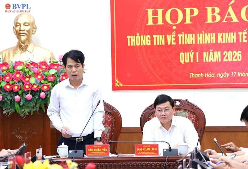 Chiều 17/4, UBND tỉnh Thanh Hóa đã tổ chức họp báo thông tin về tình hình kinh tế - xã hội quý I. Các đồng chí Ủy viên Ban Thường vụ Tỉnh ủy: Đào Xuân Yên, Trưởng Ban Tuyên giáo và Dân vận Tỉnh ủy; Mai Xuân Liêm, Phó Chủ tịch Thường trực UBND tỉnh đồng chủ trì buổi họp báo. Dự buổi họp báo có đại diện lãnh đạo các sở, ngành, đơn vị của tỉnh; các cơ quan báo chí trong tỉnh, báo chí Trung ương thường trú trên địa bàn.