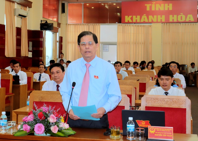 | Phó Bí thư Tỉnh ủy, Chủ tịch UBND tỉnh Khánh Hòa Nguyễn Tấn Tuân thảo luận tại kỳ họp. Ảnh: VA. |