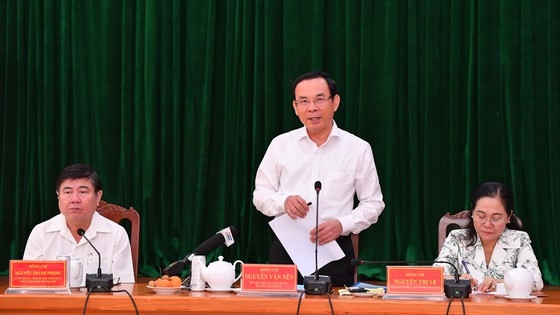 | Bí thư Thành ủy TP HCM Nguyễn Văn Nên phát biểu trong buổi làm việc với Quận ủy quận 9. (Ảnh: Việt Dũng) |
