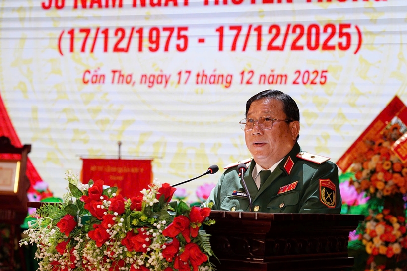 | Thiếu tướng Nguyễn Văn Tiền, UVBTVĐU, Phó Tư lệnh Quân khu, Thủ trưởng Bộ Tư lệnh Quân khu phát biểu chỉ đạo. |