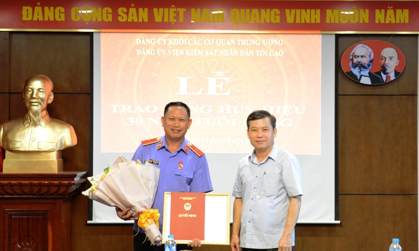 Tại buổi Lễ, đồng chí Lê Minh Trí, Ủy viên Trung ương Đảng, Bí thư Ban cán sự Đảng, Viện trưởng VKSND tối cao đã trao tặng Huy hiệu 30 năm tuổi Đảng và tặng hoa chúc mừng đồng chí Tăng Ngọc Tuấn, Bí thư Chi bộ, Vụ trưởng Vụ 15, VKSND tối cao.