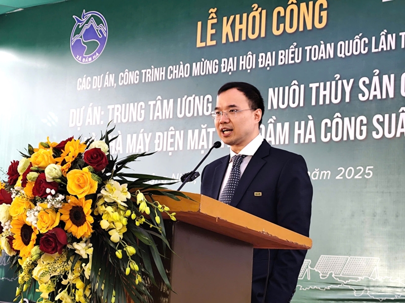 | Ông Nguyễn Hải Vinh, Tổng Giám đốc Tập đoàn Năng lượng BIM phát biểu tại lễ khởi công. |