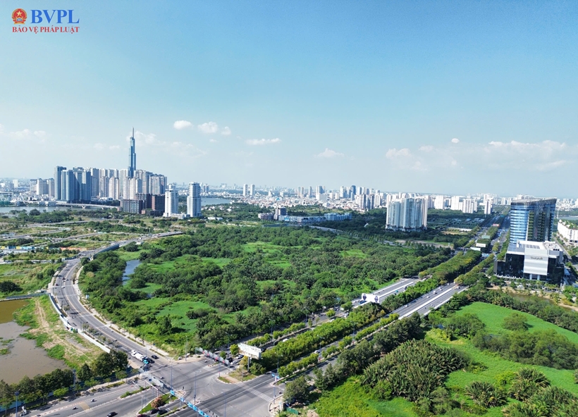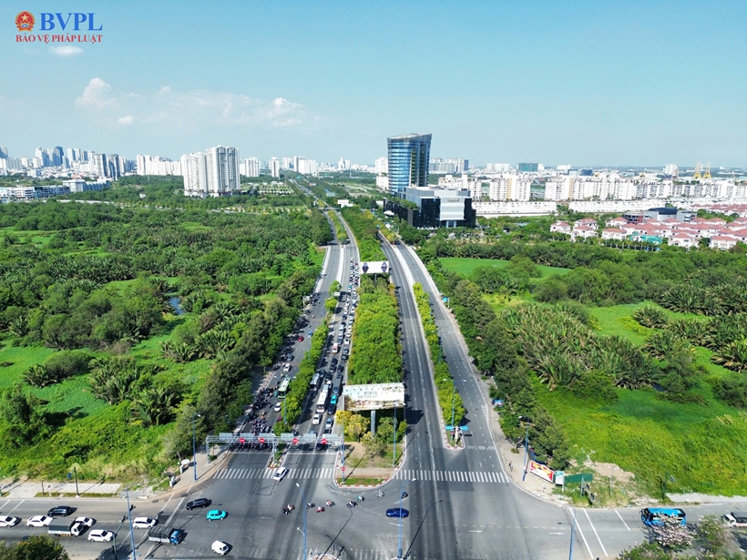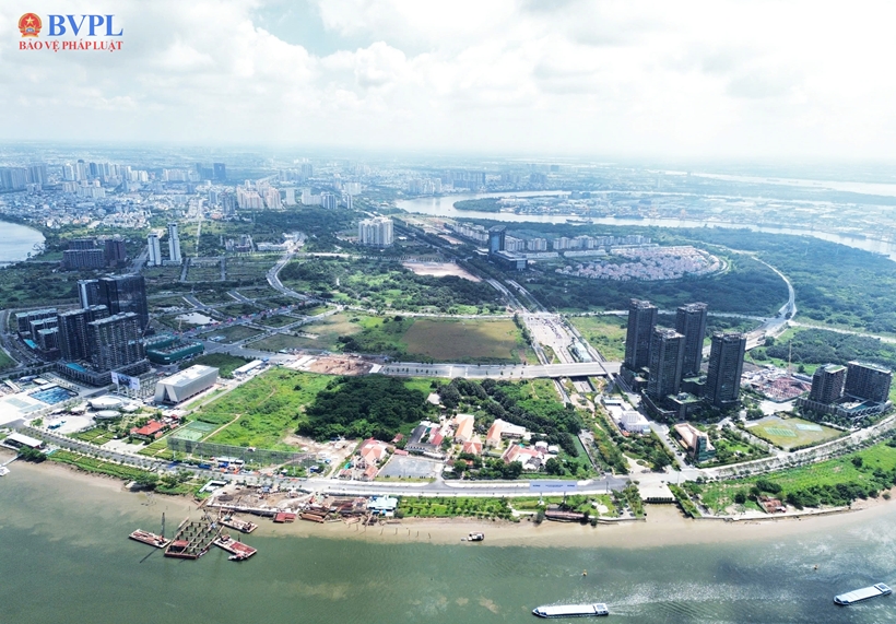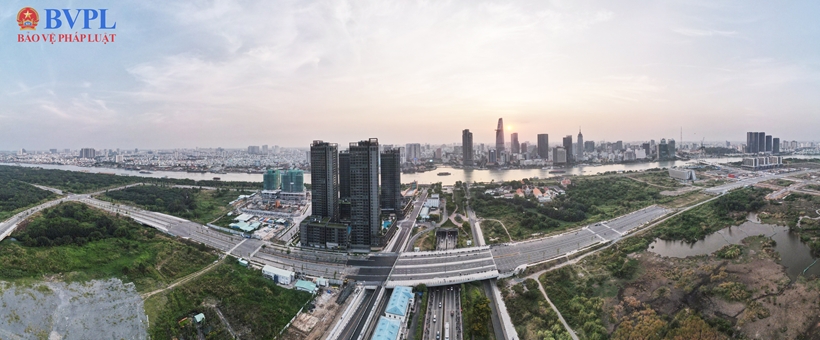| Ghi nhận của PV Báo Bảo vệ pháp luật, hạ tầng giao thông tại Thủ Thiêm được đầu tư mạnh mẽ với các trục đường huyết mạch như Đại lộ Mai Chí Thọ, các tuyến đường vòng cung, |